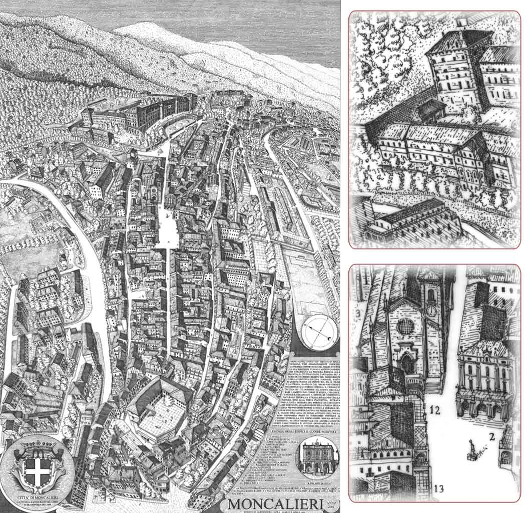 Il disegno rappresenta una veduta quasi verticale di questa grandissima costruzione che domina tutta la pianura sottostante per decine di chilometri, fino allo straordinario scenario dell’arco alpino piemontese; ed è a sua volta ben visibile dal Canavese, dal Monferrato Astigiano, dagli sbocchi delle vallate torinesi sulla pianura, consentendo all’osservatore di ubicare la posizione del capoluogo regionale anche da grande distanza.